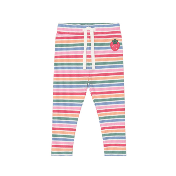 Add a burst of fruity color to her everyday rotation with the Multicolor Tutti Frutti Striped Legging by Hux Baby.