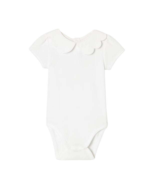 Introducing the White Baby Coeur Scallop Collar Onesie by Jacadi.