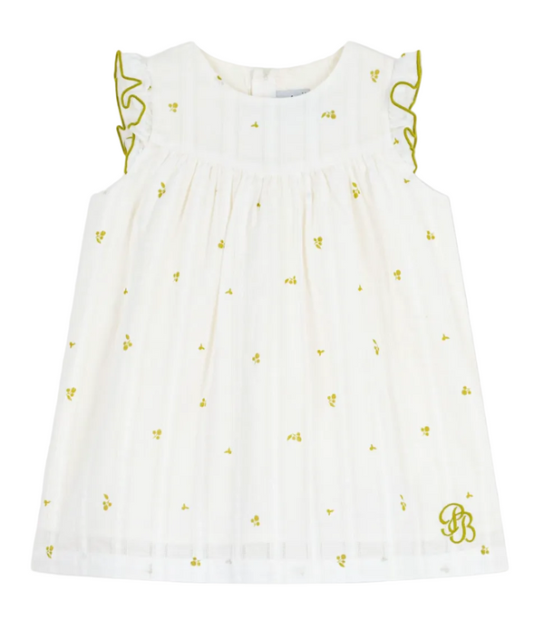 Dress her in the White Baby Green Flower Dress by Petit Bateau.